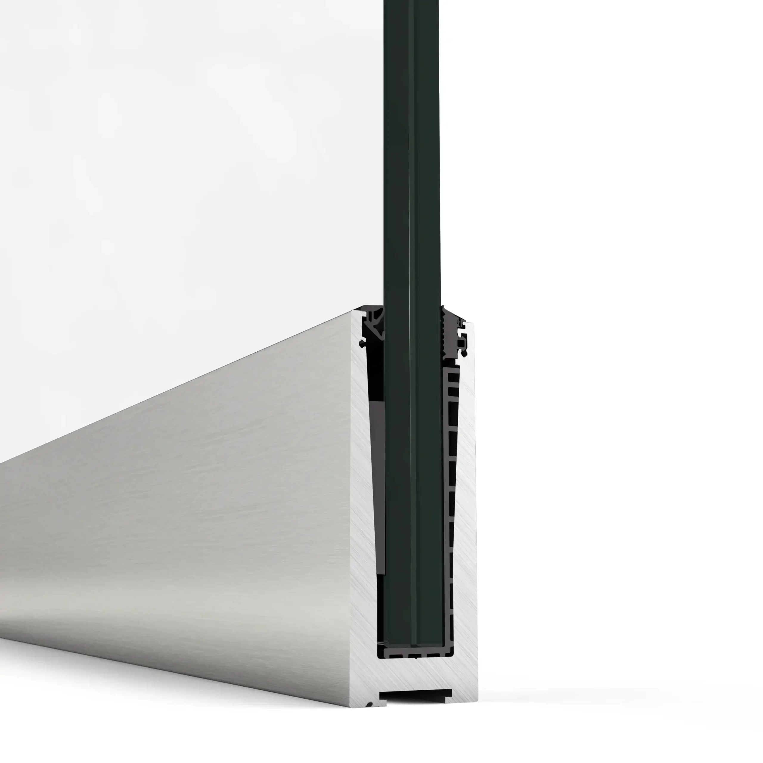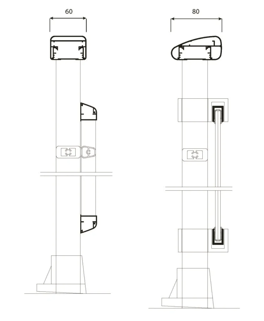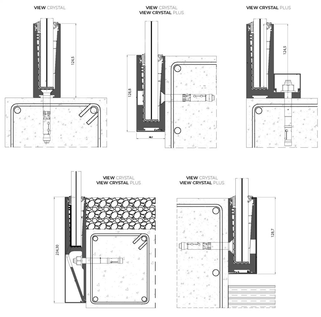 Disfruta de excelentes vistas sin ningún tipo de obstáculo, gracias a este sistema de barandilla basado en un perfil de aluminio con forma de “U” sobre el que se fija vidrio laminar de seguridad templado. Posibilidad de iluminación con tira led y solución de drenaje para zonas expuestas. Opción de perfil embellecedor de aluminio en el canto superior.