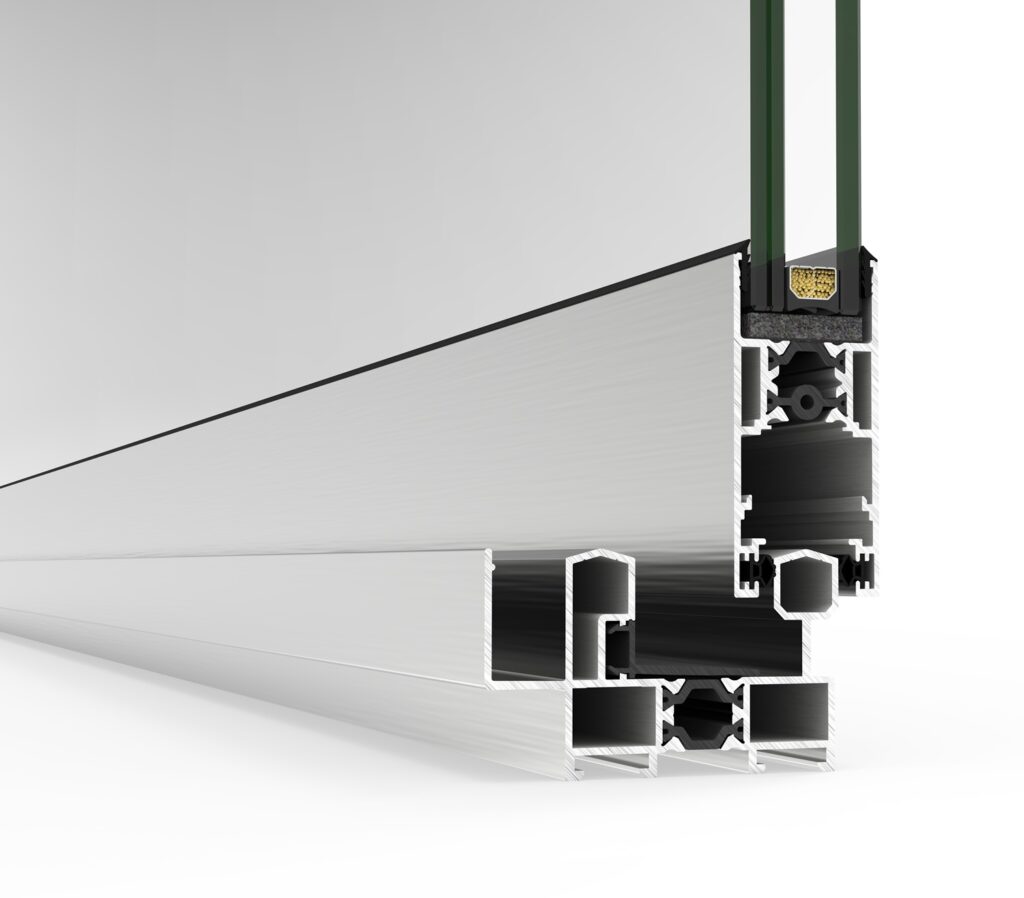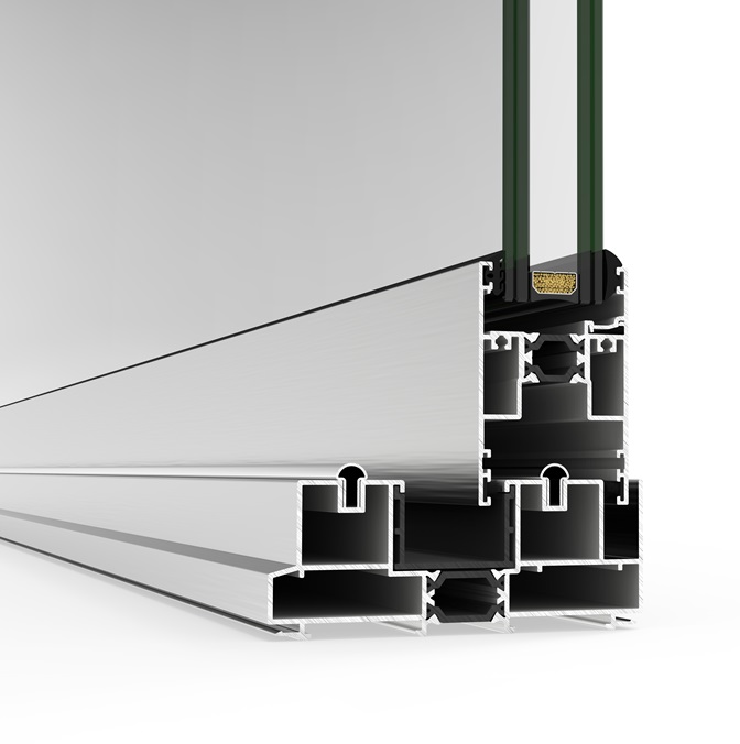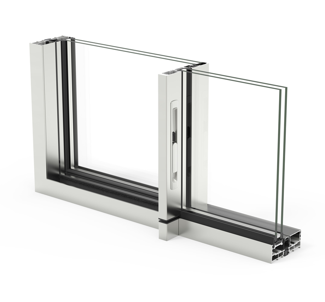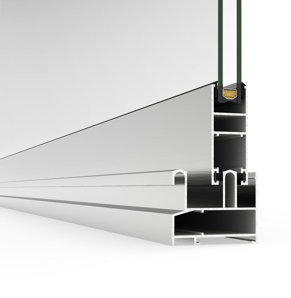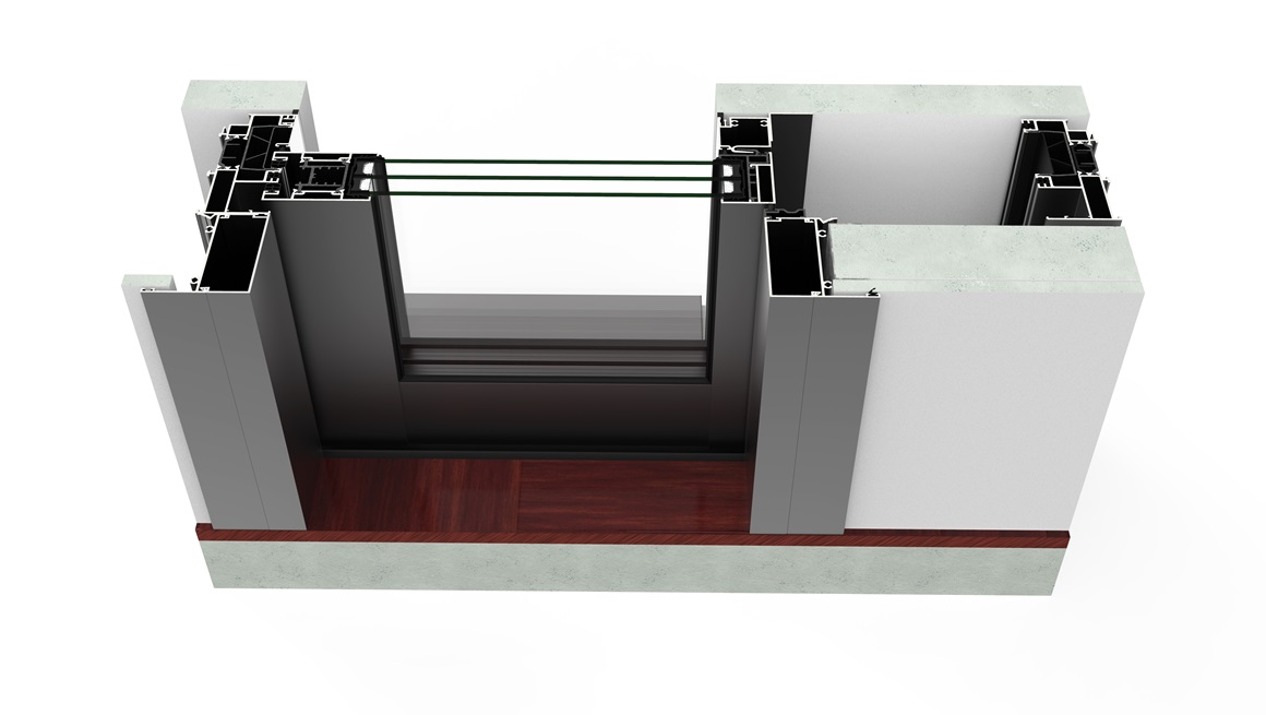 Sistema de corredera minimalista con rotura de puente térmico que ofrece la máxima luminosidad con la mínima sección vista de aluminio. Presenta un diseño elegante con un nudo central de solo 20 mm, y ofrece la posibilidad de ocultar el marco perimetralmente.