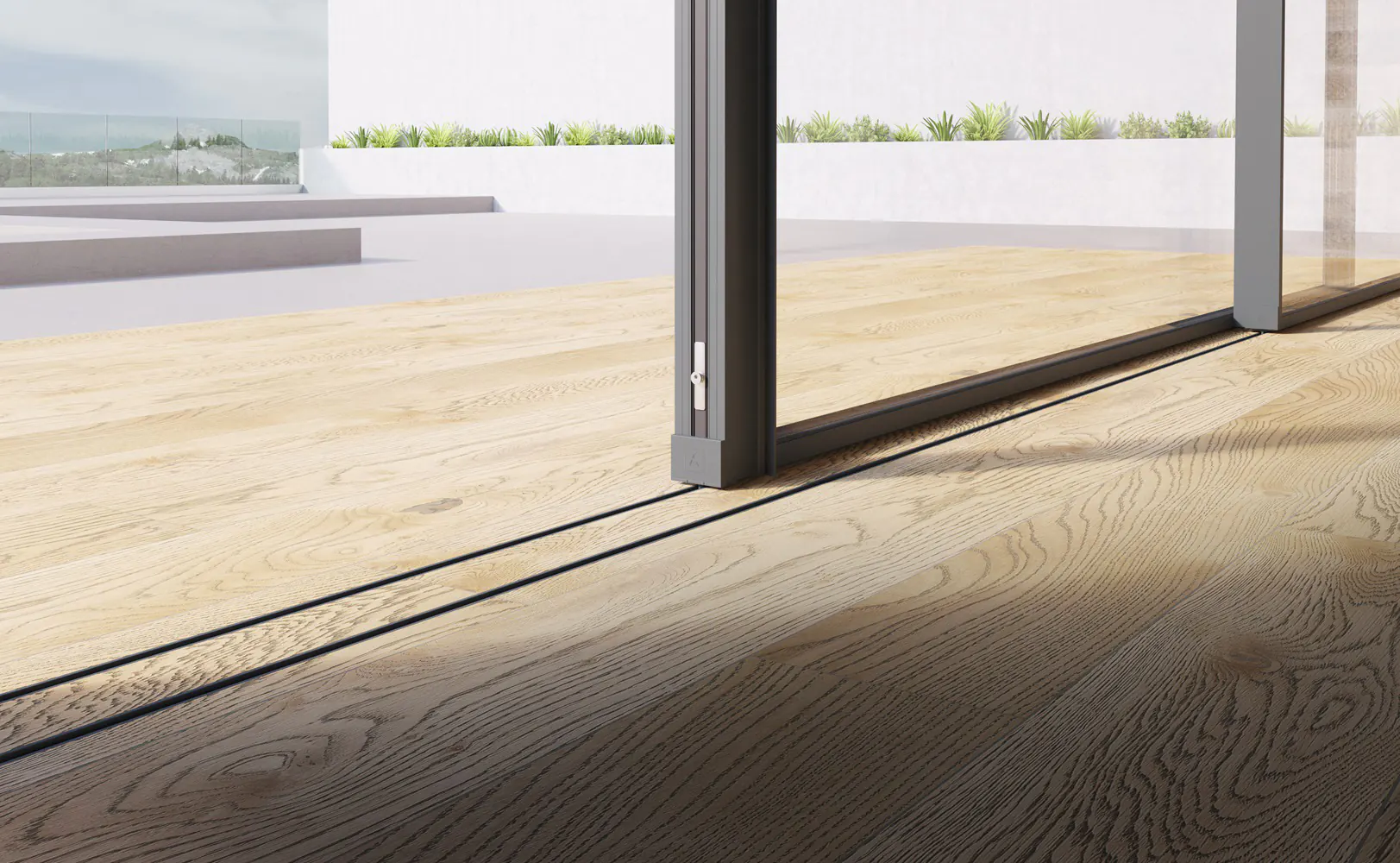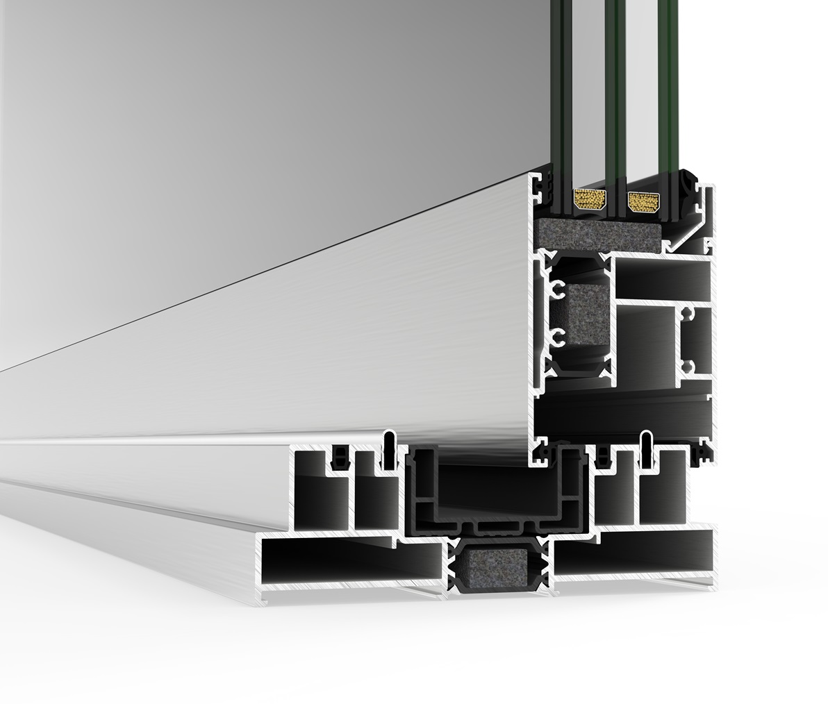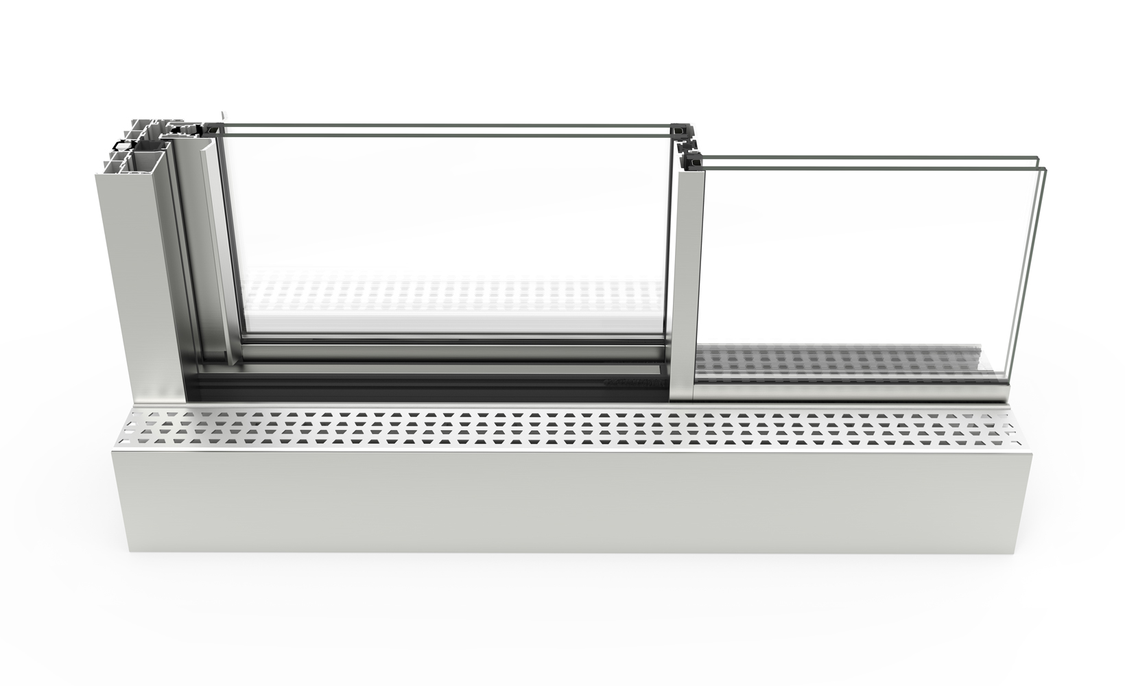 Sistema de corredera minimalista con rotura de puente térmico que ofrece la máxima luminosidad con la mínima sección vista de aluminio. Presenta un diseño elegante con un nudo central de solo 20 mm, y ofrece la posibilidad de ocultar el marco perimetralmente.