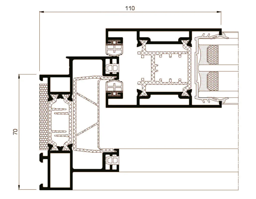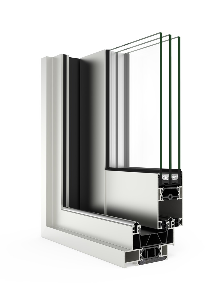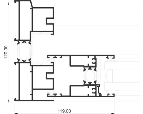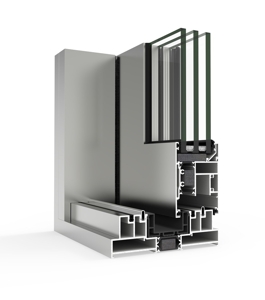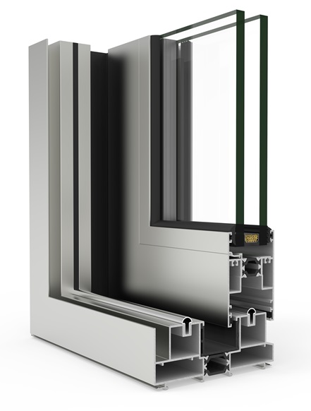 gran aislamiento térmico y acústico favorecido por una capacidad de acristalamiento de hasta 36 mm y una rotura de puente térmico de 34 mm. Presenta nudo central de 35 mm y líneas rectas, permitiendo el cruce de