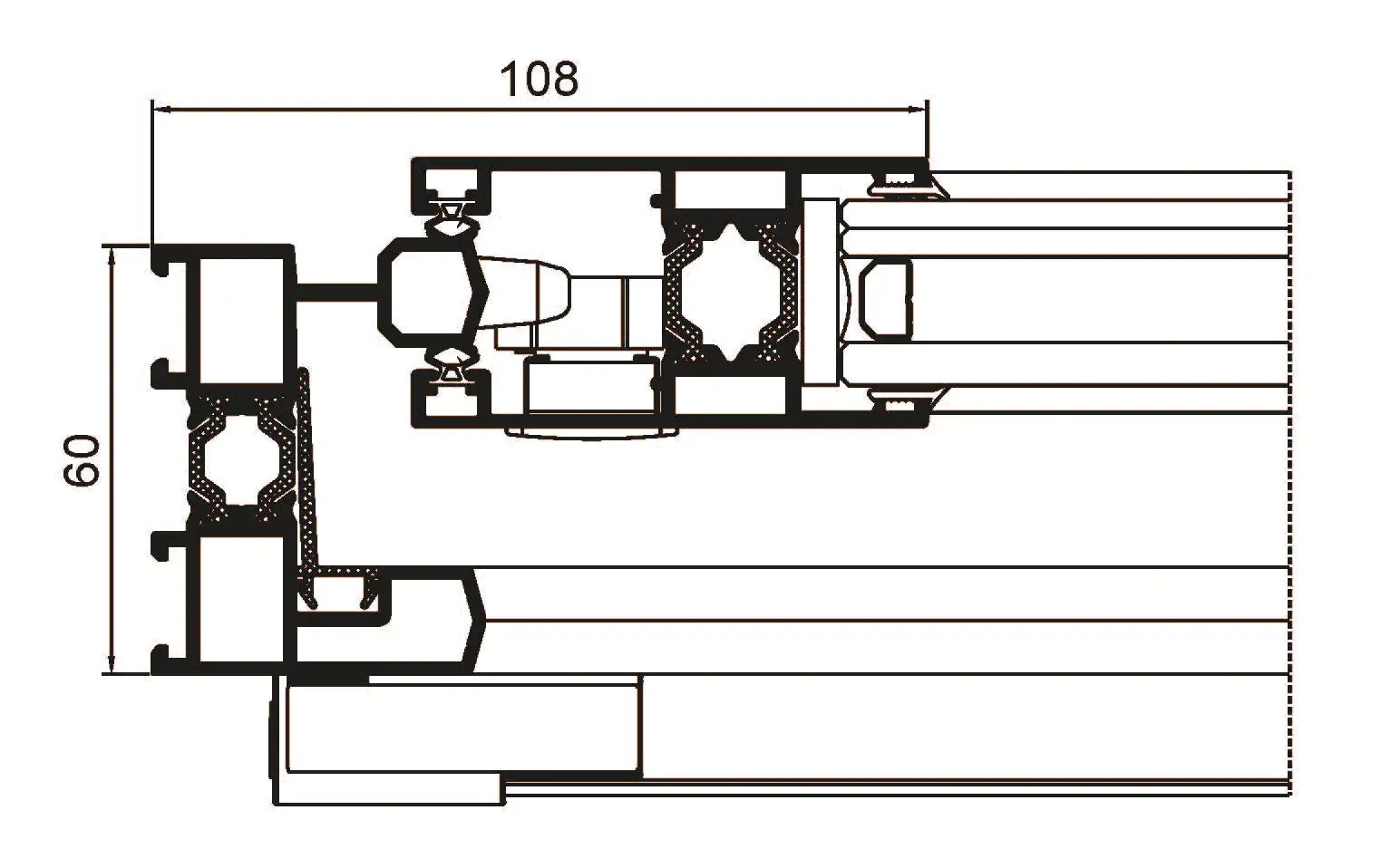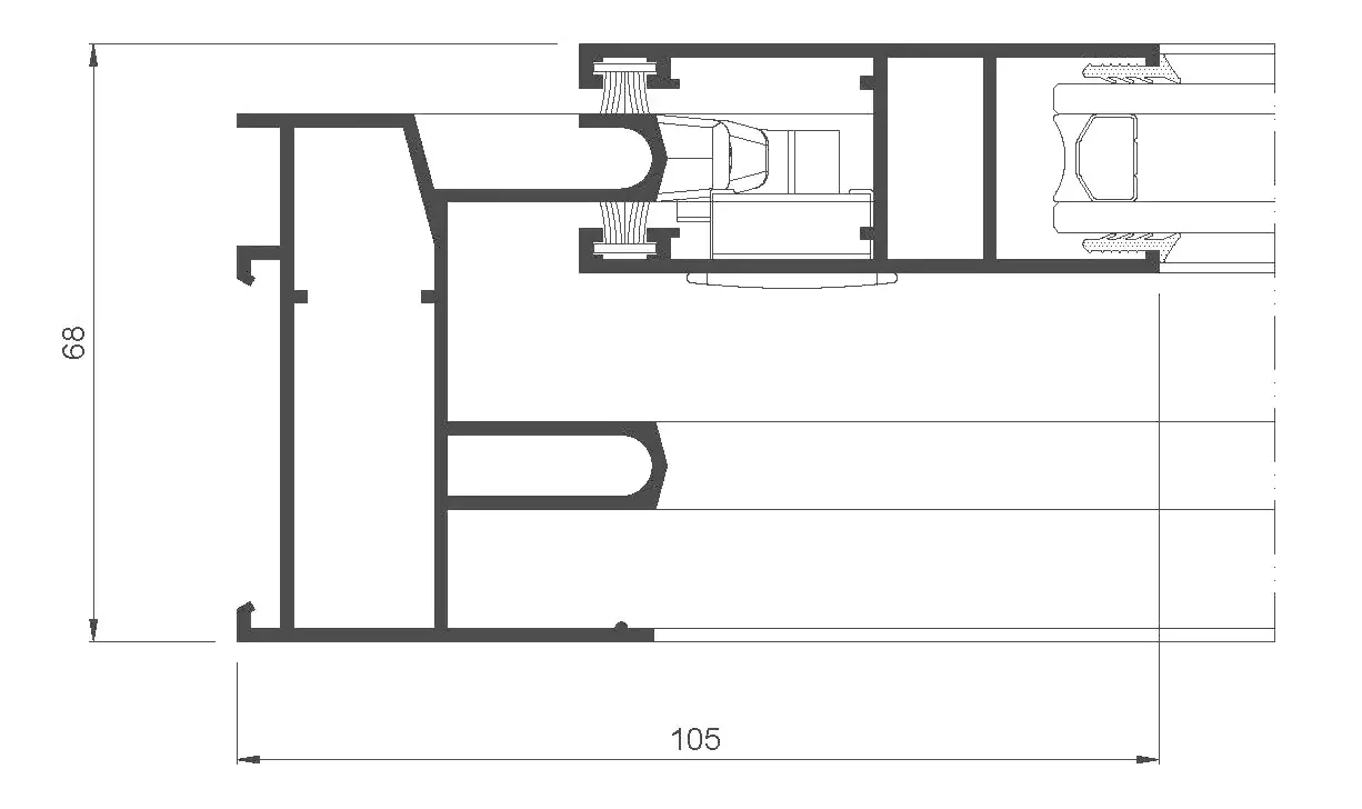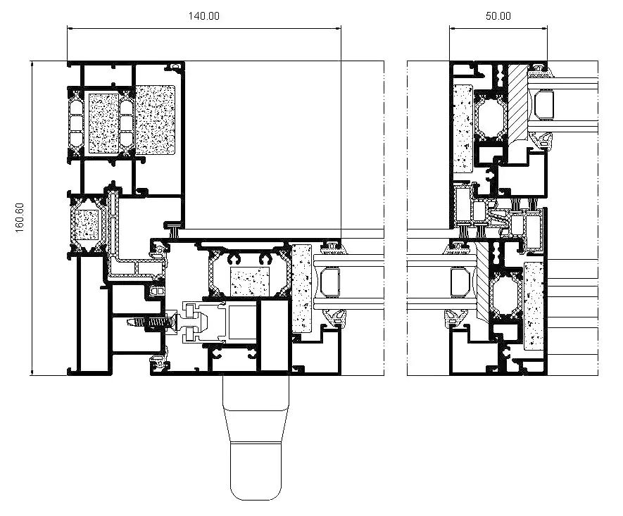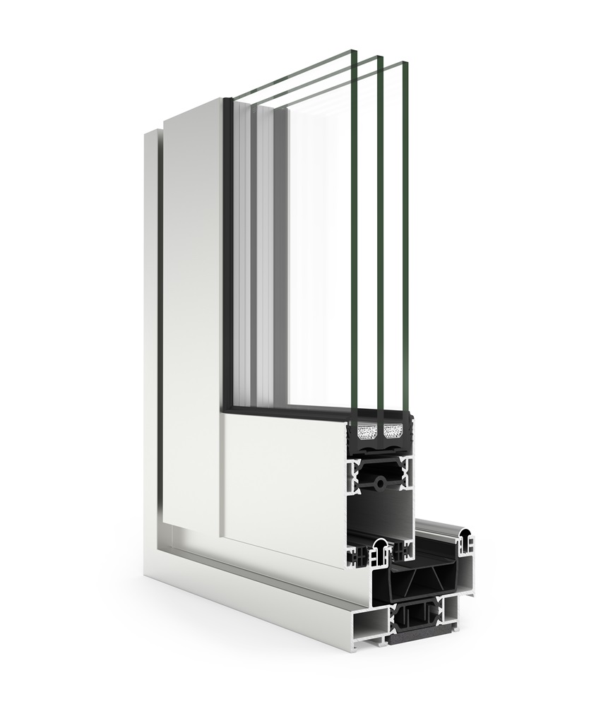 gran aislamiento térmico y acústico favorecido por una capacidad de acristalamiento de hasta 36 mm y una rotura de puente térmico de 34 mm. Presenta nudo central de 35 mm y líneas rectas, permitiendo el cruce de
