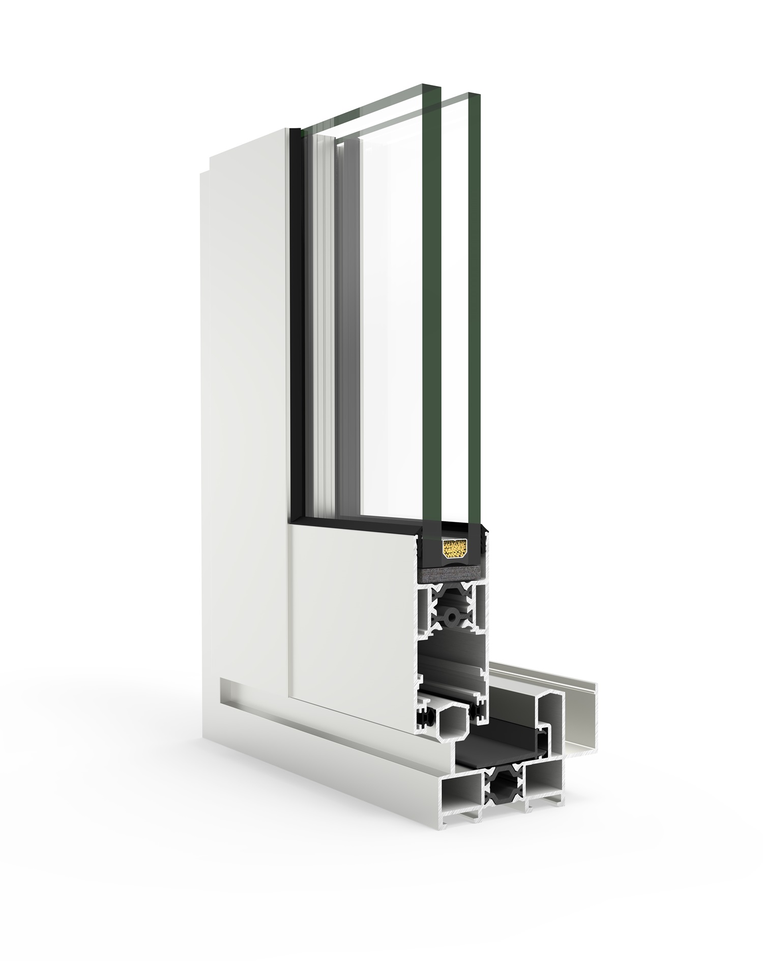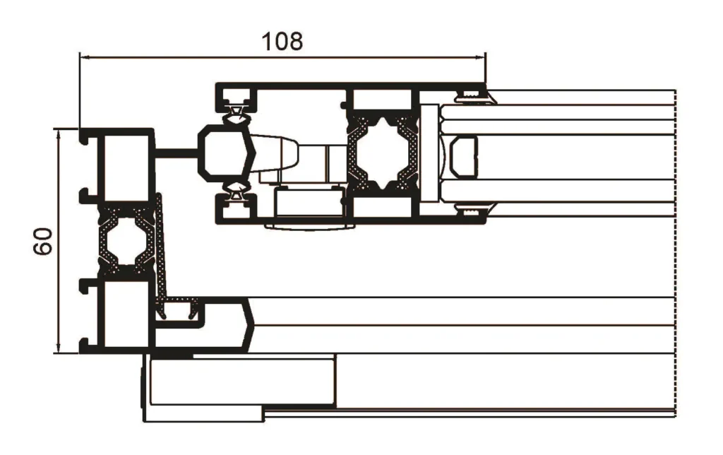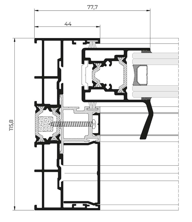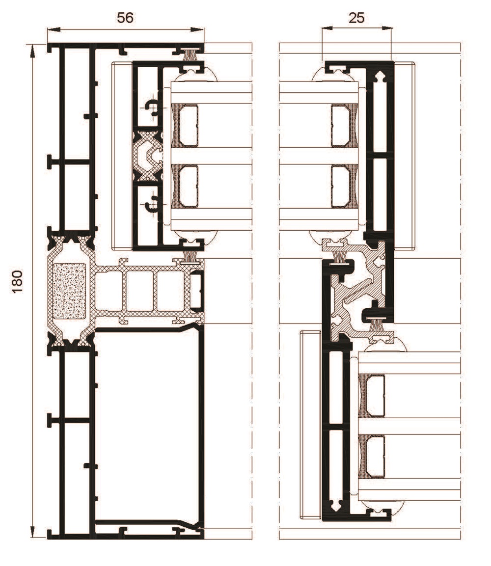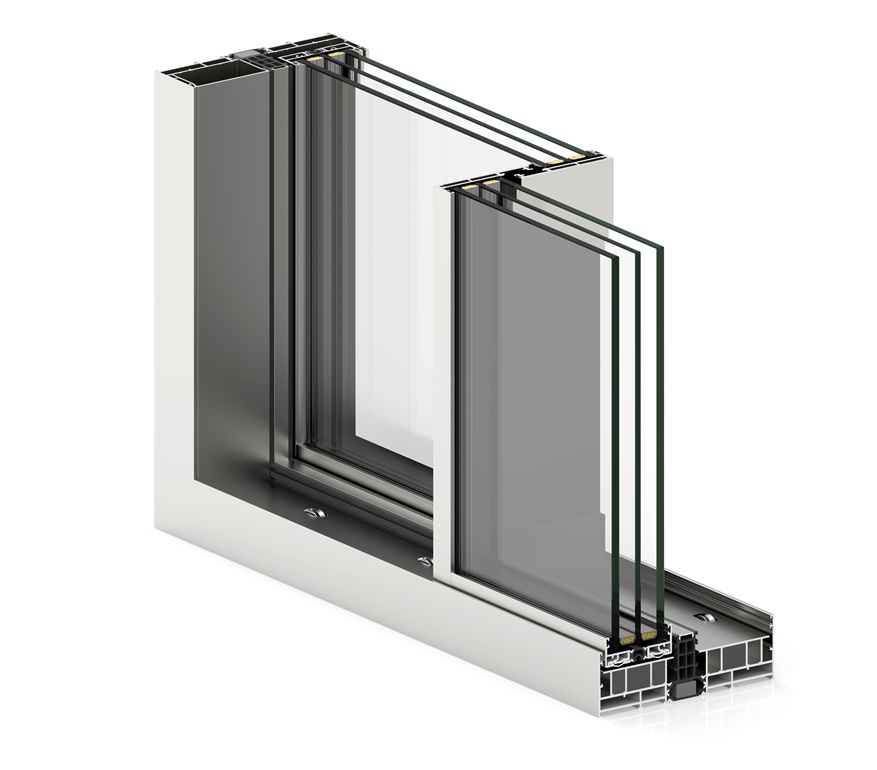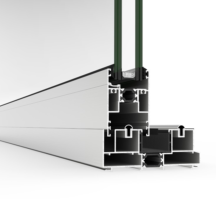 Solución ideal para cerrar grandes vanos, ofreciendo excelentes prestaciones térmicas (Uw desde 0.9 W/m²K) y acústicas (Rw hasta 43 dB) acompañadas de un cuidado diseño con estética recta en hoja y junquillo. Incorpora un sistema de herraje que eleva ligeramente la hoja al accionar la manilla, facilitando su desplazamiento durante la apertura y cierre, incluso en hojas de grandes dimensiones y pesos. Posibilidad de nudo central reducido de 50 mm.
